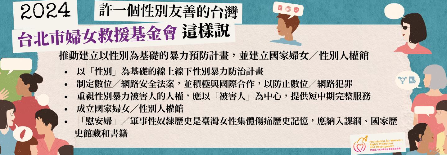 【台北市婦女救援基金會:推動建立以性別為基礎的暴力預防計畫,並建立國家婦女/性別人權館】